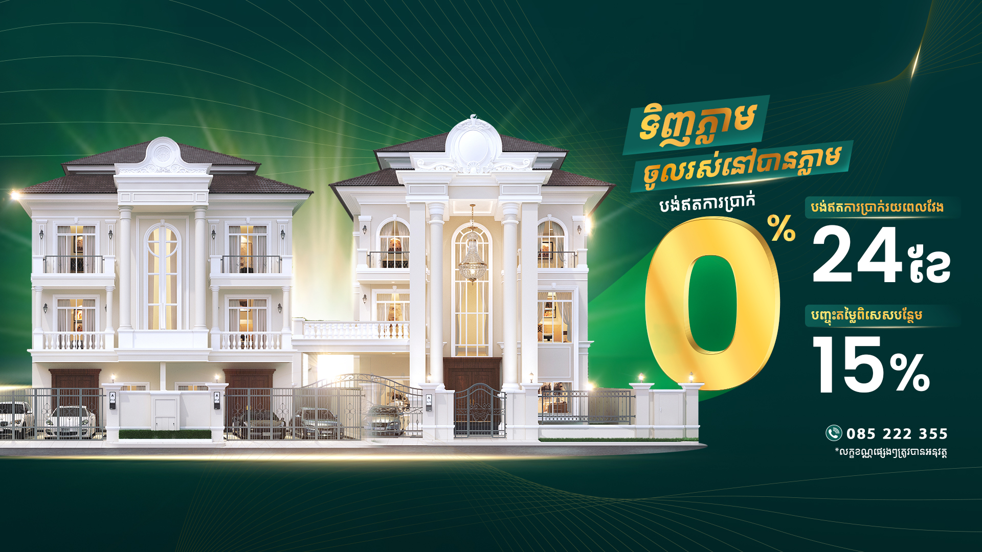 Single villa, please rent by Borey Garden City Olympic Villa, is having a special promotion with discounts up to $138,888 immediately with a wide range of payments and no interest for up to 36 months.